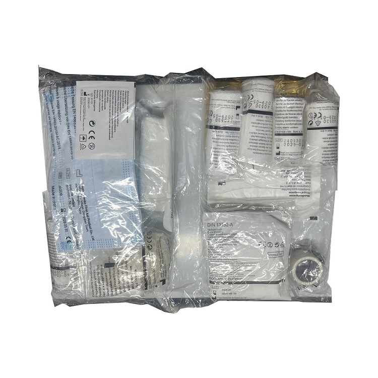 このキットは、応急処置キットに関する DIN 13164 規格によって設定された厳格な基準に準拠し、初期の緊急医療支援に必要な物品を提供するように設計されています。
