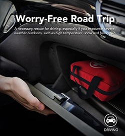 緊急持ち出し品:瞬間保冷剤、緊急用ブランケット、応急処置ガイド