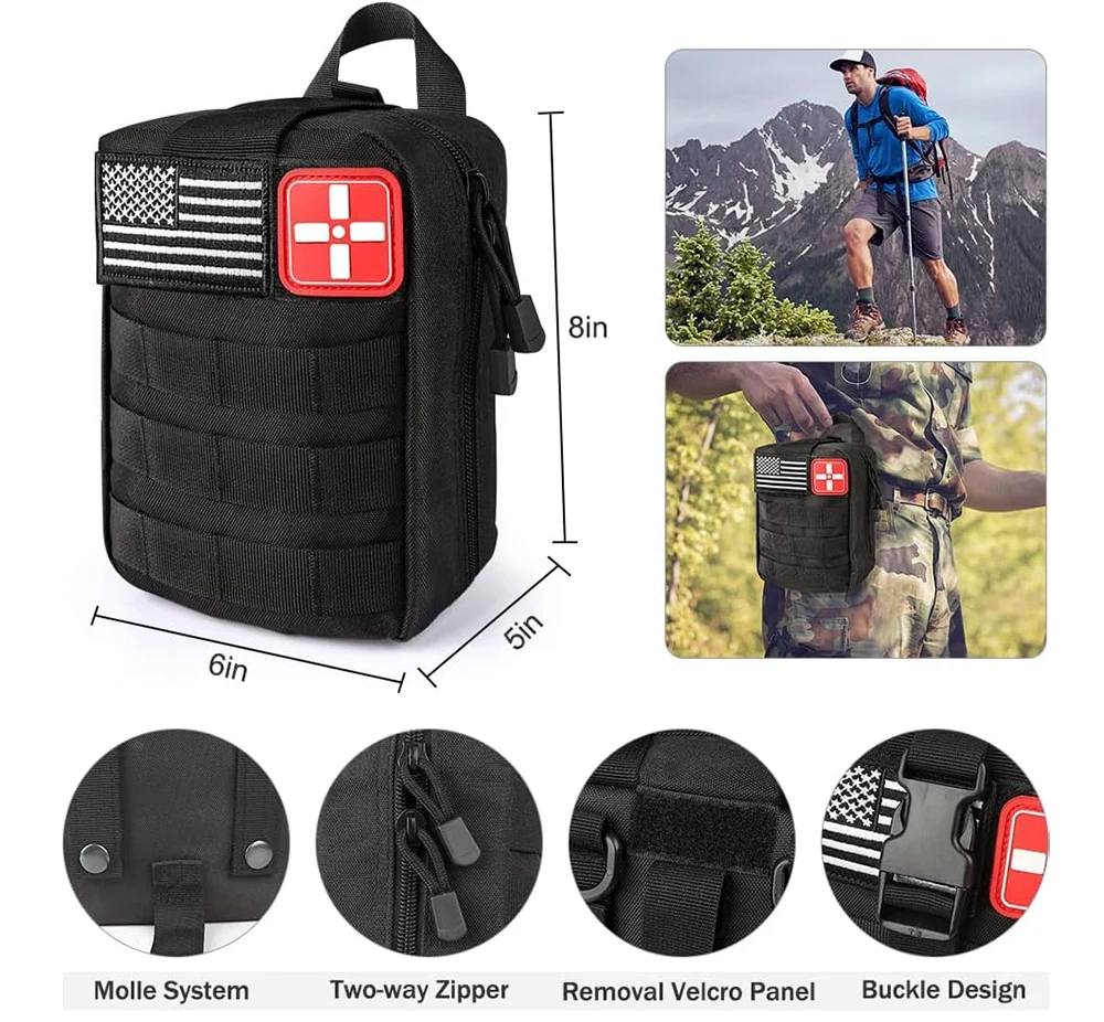 戦術、攻撃、ワルゲーム、ギア貨物、狩猟、射撃、CS、遠征、冒険、ワイルドゲーム、荒野のサバイバル、ハイキング、キャンプ、トレッキング、旅行、登山、サイクリング、釣り、ジム、その他のスポーツのためのMolle Medical Pouch。