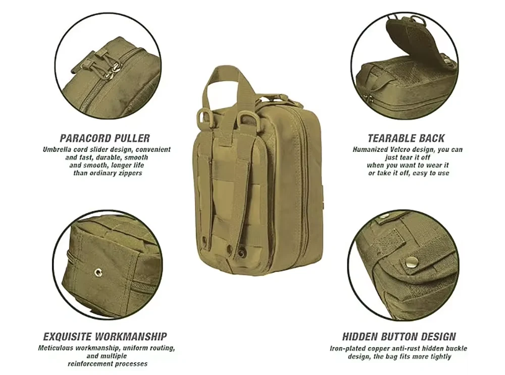 高グレードの頑丈なポリエステル材料と頑丈な二重ステッチは、あらゆる環境でこの戦術的なメディックポーチの耐久性を与えます。強いスナップを備えたモルストラップを使用すると、この医療用ポーチをモル互換のギアに取り付けることができます。クラシックデザインロープロファイルポーチ。医療ポーチ